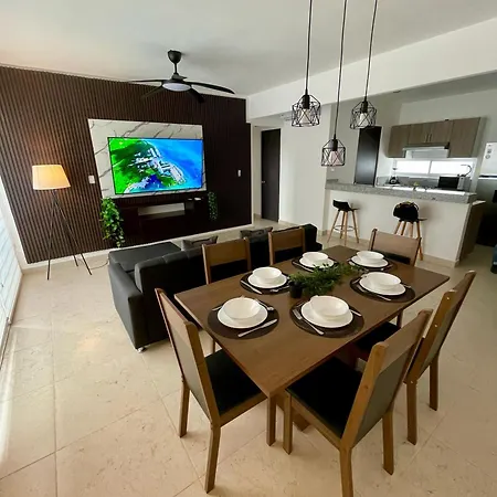 Apartamento Departamento Exclusivo Liverte Cancún de 2 quartos dá as boas-vindas aos viajantes no centro de Cancún, localizado a uma distância aproximada de 25 minutes caminhando do Parque Urbano Kabah. Com tênis de mesa na área, os hóspedes podem se manter em forma.